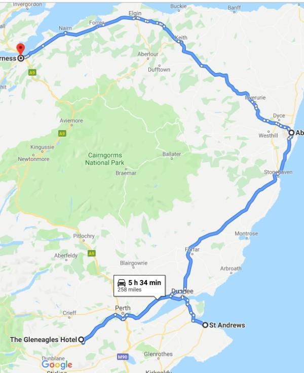 St. Andrews, Perthshire, Aberdeen, Inverness